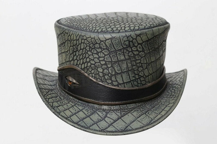 Distress Wax Crocodile Plated Leather Eye Band Steampunk Motorcycle Top Hat