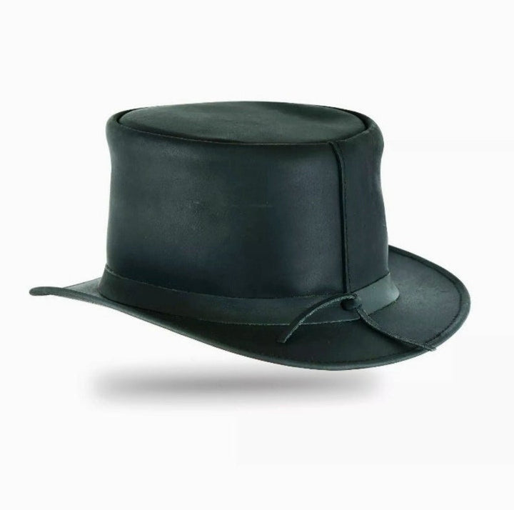 Embark on a journey of timeless mystique and daring with the El Dorado Top Hat, crafted in sleek black leather. This exceptional accessory not only encapsulates classic style but also embodies the thrill of exploration. Enhanced by a simple band, it captures an air of refined sophistication, perfect for those enamored by steampunk aesthetics, motorcyclists, and bikers alike. Beyond being a mere accessory, this hat is a statement piece – a symbol of individuality and boundless spirit. It's not just a gift for her; it's an expression of admiration for those who relish tradition and embrace the extraordinary. Channel your inner magician and transform your look with this captivating top hat that promises to capture hearts and imaginations.