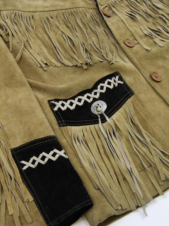 Leather jacket Men's Traditional Native Suede Leather Western Jacket Braided Fringes Country Side Red Indian Western Wear