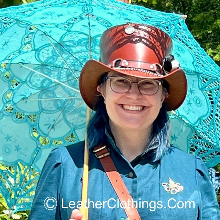 Indulge in the allure of vintage-inspired charm and modern-day adventure with the Steampunk Hat El Dorado Top Hat. This exceptional piece, crafted from luxurious brown leather, is a testament to both timeless style and the unquenchable thirst for exploration. The meticulously designed SR2 band encircles the crown, adding an element of mystery that captures attention effortlessly. Ideal for motorcyclists and bikers who crave the open road's thrill, this hat is more than an accessory; it's a symbol of individuality and audacious spirit. Whether you're seeking a gift for him or her, this hat transcends mere fashion, representing the call of the unknown and the yearning to stand out in a crowd. Elevate your style game and make a statement that resonates with the free-spirited soul within.