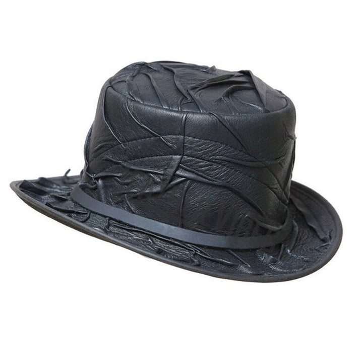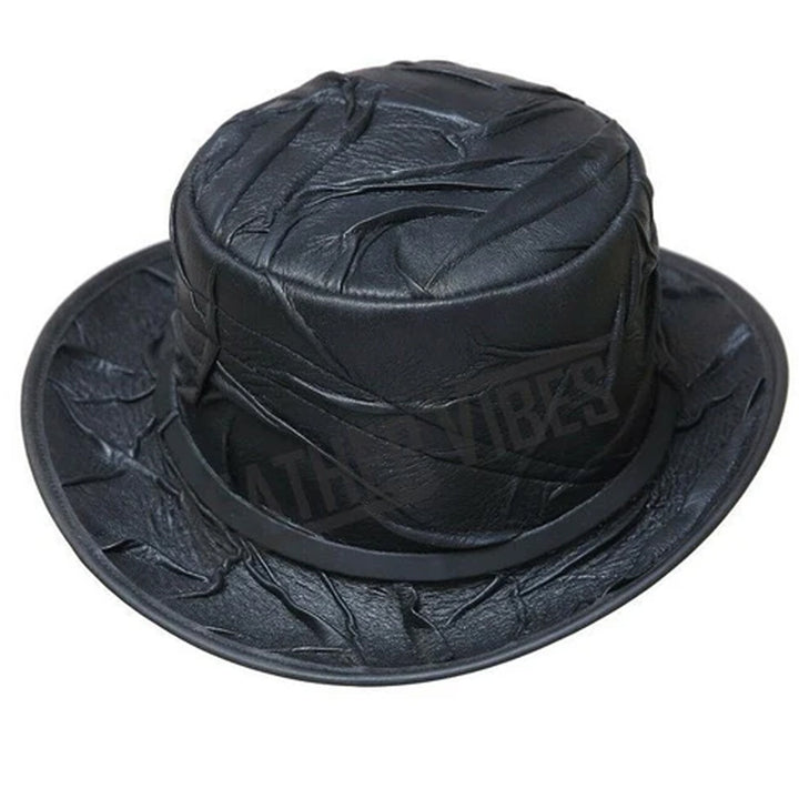 With its unique crinkle texture, this leather top hat is a great addition to any gothic or steampunk wardrobe. Its sleek and stylish design makes it perfect for formal events or just for everyday wear.